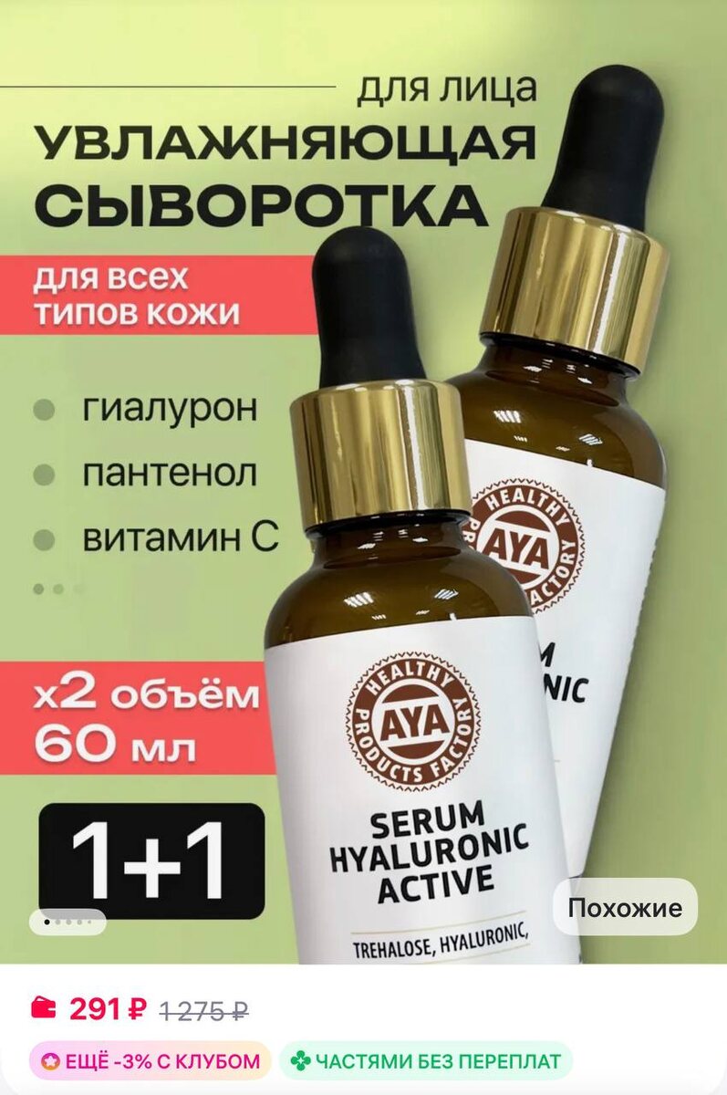 AYA Сыворотка для лица с гиалуроновой кислотой 2 шт