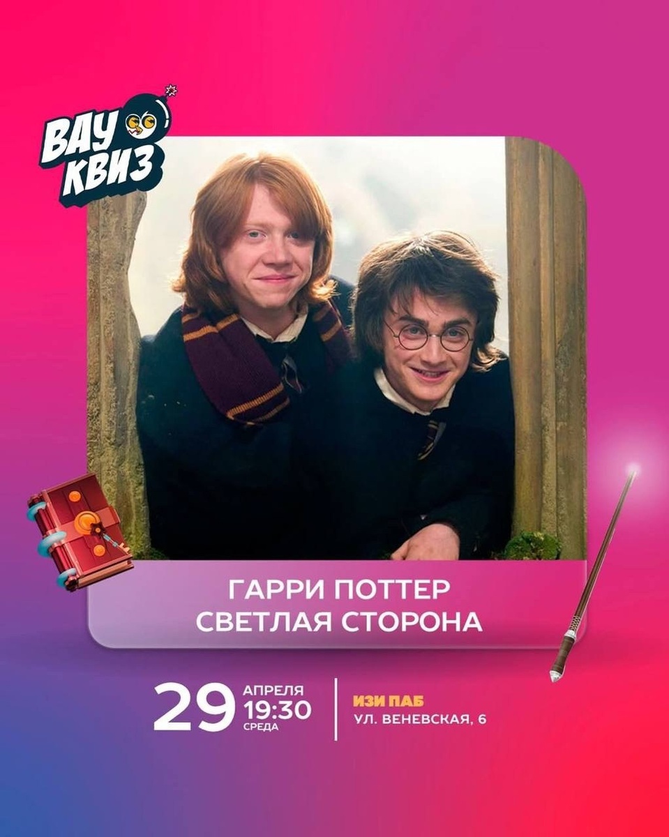 🥘 Кто готов доказать, что его сердце навсегда принадлежит Хогвартсу и силам добра? Встречаемся на светлой стороне магии, где вспомним всё, за что мы полюбили эту историю: 🧙♂ 29 апреля (ср) 19:30 — Гарри Поттер. Светлая сторона в «Изи Паб» (Южное Бутово) Начнём с теплой Разминки, чтобы окунуться в атмосферу, а потом гимном «Хогвартс, Хогвартс, наш любимый Хогвартс» откроем двери в настоящее магическое путешествие. В Мультимедиа-туре включим и зрение, и слух: кадры из фильмов, голоса любимых героев и саундтреки, от которых мурашки. Регистрация уже открыта: zamkadom.wowquiz.ru 📶 Категория: Ресторан 🏢 Место: Бар "Изи Паб" 📍Адрес: г. Подольск, Революционный просп., 49/107этаж -1 ⏱ Часы работы: 12:00 – 00:00 ✅ Где поесть, Подольск!? https://dzen.ru/id/6756016c107ef731969e16a5 https://vk.com/gde_poest_podolsk https://dzen.ru/gde_poest_v_podolske