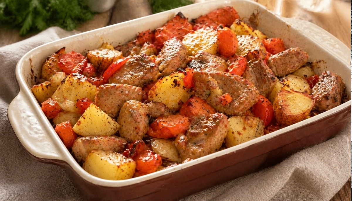 Знаете это состояние, когда вечером уже нет ни сил, ни желания стоять у плиты, а ужин всё равно нужен нормальный, домашний, чтобы все были сыты? У нас такие дни случаются регулярно. И вот в такие моменты спасает один рецепт, который сначала кажется слишком простым… но потом становится любимым. Потому что там не нужно стоять, мешать, переворачивать и переживать, что что-то подгорит. Всё делается самостоятельно, а результат получается таким, что потом ещё добавку просят. С этим блюдом вообще произошла забавная история. Сначала мы сделали его «на скорую руку» — просто чтобы не возиться долго на кухне, без особых ожиданий. А потом оказалось, что именно такие простые рецепты и остаются в семье надолго. Пока мясо спокойно томится в духовке, овощи пропитываются соком и ароматом, в итоге получается не просто ужин, а что-то очень домашнее и уютное. Просто нормальная еда, которую хочется есть. И вот именно такие рецепты лучше всего «заходят» и в жизни. С таким ужином происходит интересная вещь.