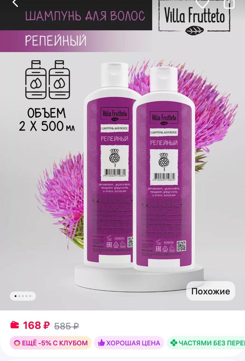 Villa Frutteto Шампунь для волос увлажняющий Репейный 500 мл 2 шт