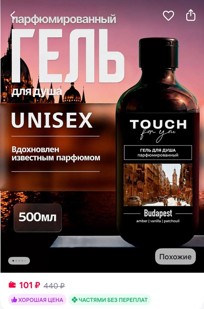 Touch For You Парфюмированный гель для душа BUDAPEST, 500 мл