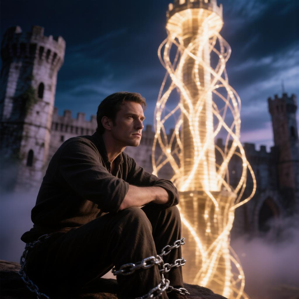 В этот миг на моих руках появились оковы подчинения — холодные, тяжёлые, они сомкнулись вокруг запястий с тихим лязгом. Амаймон взял меня за цепь и повёл в свои покои по длинным тёмным коридорам замка. Тени скользили по стенам, словно живые существа, а эхо наших шагов отдавалось в ушах глухим стуком. Приведя в спальню, он наказал мне сидеть возле двери и охранять его покой и сон. Но перед входом стража грубо сняла с меня мантию легионера — символ моего статуса — и забрала именную печать, лишая последних атрибутов власти. Амаймон подвёл меня к себе, взял в руки кинжал с тёмным лезвием и одним резким движением снял с моей головы волосяной покров — в знак собственной власти и моего унижения. Затем он усадил меня на пороге спальни и лёг на кровать, уснув до рассвета. Я остался сидеть и ждать, как верный пёс своего хозяина, глядя в окно. За стеклом мерцали звёзды, но их свет не приносил утешения. Время тянулось бесконечно, а холод камня под ногами проникал в тело.