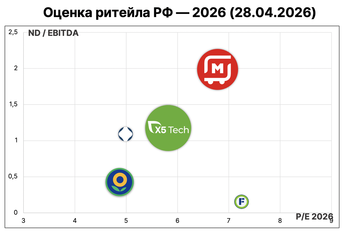 👀 Что-то нещадно и (несправедливо) ритейл льют последние дни. На мой взгляд, негативная динамика акций оправдана только по Магниту. Все-таки отчет основной операционной дочки Тандер за 2025 год плохой, и сам Магнит потенциально стоит около 7 прибылей 2026 года. Магнит – самый дорогой, самый нагруженный долгом и наименее растущий. При этом, снижение Ленты, Новабева, да даже X5 — считаю фундаментально не обоснованным. На этой неделе отчитаются Лента и X5 за 1 квартал. Как отчитаются — разберу результаты для вас.