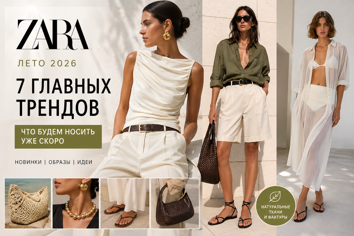 Летняя коллекция Zara 2026 — это не просто базовые вещи, а чёткое понимание того, куда движется мода. В этом сезоне бренд делает ставку на комфорт, спокойную эстетику и аккуратные акценты. Разбираем, что именно Zara предлагает носить этим летом и какие вещи действительно стоит взять на заметку. Главный вектор — вещи, которые выглядят дорого без лишнего декора. В коллекции много: Цвета спокойные: бежевый, молочный, оливковый, карамель. 👉 В тренде: