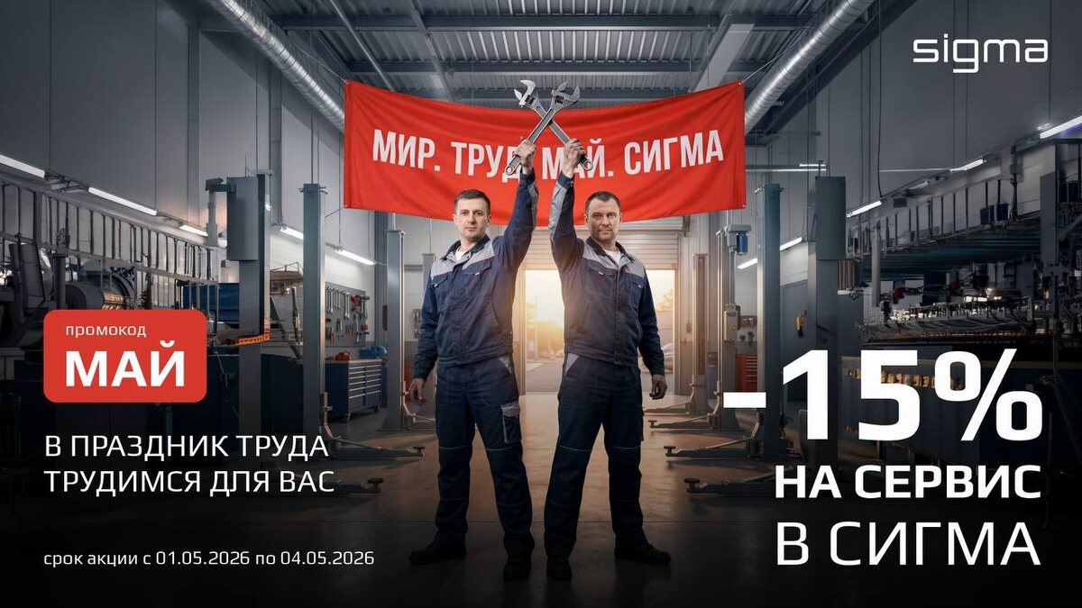 Планируете отдых на майские, а мы позаботимся о вашем автомобиле, чтобы он был полностью готов к поездкам. С 1 по 4 мая запускаем праздничное предложение: — 15% скидка на сервисные работы и запчасти 🔧 Диагностика, обслуживание или ремонт — сейчас самое время позаботиться о своем автомобиле с выгодой. 🎁 + подарочный сертификат в ресторан — приятное дополнение, которое сделает ваш вечер ещё уютнее и ярче. Чтобы получить скидку, просто назовите при записи промокод: «МАЙ» ГК Сигма — в праздник труда трудимся для вас 💪 📅 Успейте до 4 мая! Акция действует с 01.05.2026 по 04.05.2026 и не суммируется с другими скидками и спецпредложениями. 📞Записаться на сервис: +7 812 424 85 02