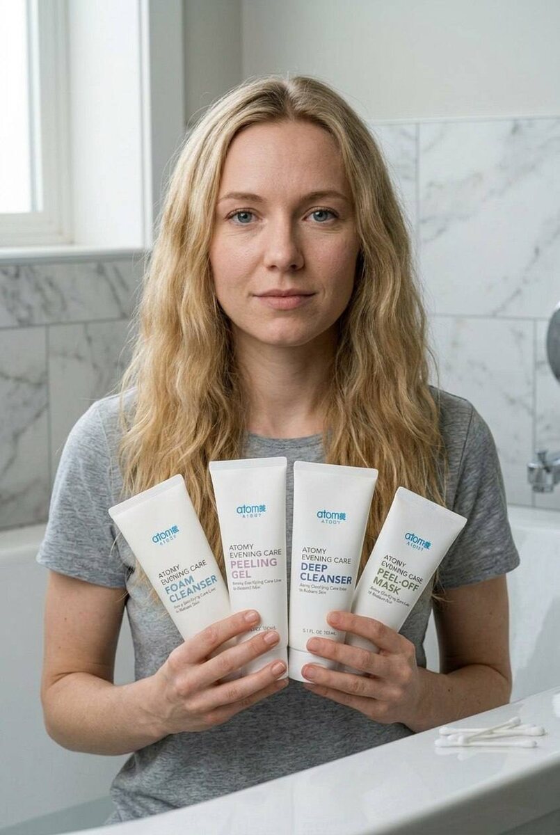 😌🧖♀️ За день мы решаем сотни задач, а к вечеру просто мечтаем упасть лицом в подушку. Но есть один шаг, который отделяет уставшую девушку от счастливой обладательницы чистой и сияющей кожи ✨ Люблю очищение от Атоми за то, что оно не требует силы воли. Это как спа-ритуал за 2 минуты, после которого хочется лечь на чистую простыню и выдохнуть. 🗓 Почему это важно именно вечером: 1️⃣ За день на коже оседает пыль, пот и себум (добро пожаловать, акне). 2️⃣ Даже самый легкий тональный крем + SPF создают пленку, которая мешает клеткам дышать за ночь. 3️⃣ Ночью кожа восстанавливается, но ей нужен свободный доступ к кислороду. 💧 Как я это делаю (мой ритуал): ▫️ Сначала гидрофильное масло (смываю всё липкое и жирное) ▫️ Затем пенка (убираю остатки и тонизирую) После наношу ночную маску с золотом ) Результат: кожа не стянута, нет ощущения «пленки», только прохлада и сияние. Идеальное лицо перед сном 🌙 Маску пленку и пилинг гель использую пару раз в неделю, под настроение 😍 #атоми #