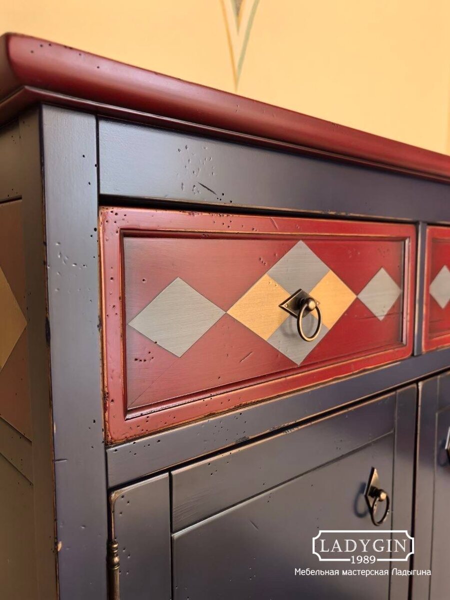 Выполнен из массива дерева вручную, с деликатной патиной, которая подчёркивает текстуру и добавляет глубины цвету