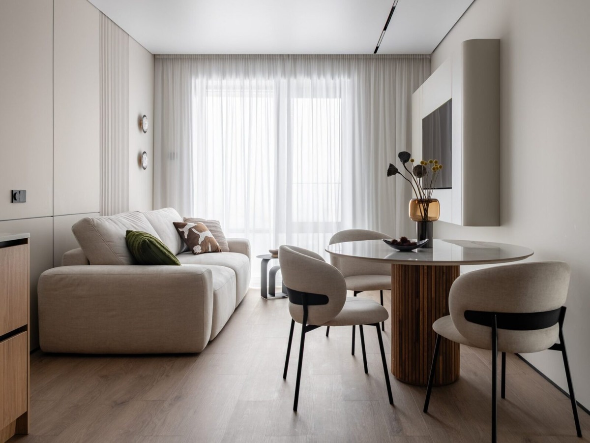 Трехкомнатная квартира, в которой спроектировали кухню-гостиную, спальню, две детских комнаты, и два санузла. Интерьер выдержан в теплой гамме с мягкими, обволакивающими линиями — радиусные фасады кухни и зоны ТВ повторяются в дизайне мастер-спальни, создавая единый стиль. Читать статью далее на сайте журнала МВ
