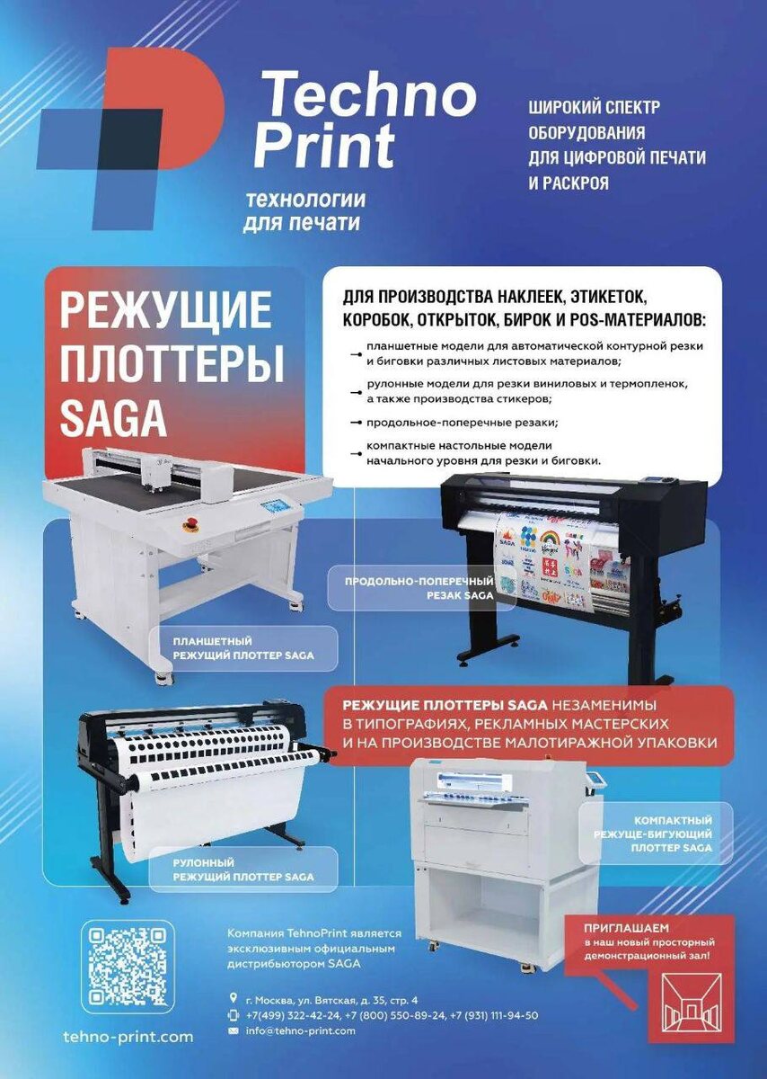 Напоминаем: Технопринт — эксклюзивный дистрибьютор оборудования SAGA в России. И это не просто плоттеры. Это одни из самых сильных решений на рынке для: — рекламного производства — полиграфии — упаковки — работы с плёнками, картоном, бумагой и композитами ⸻ 🔥 В линейке SAGA: ✔️ Рулонные режущие плоттеры ✔️ Планшетные режущие плоттеры ✔️ Автоподатчики ✔️ Системы резки по X/Y ✔️ Триммеры и вспомогательное оборудование ⸻ 💡 Почему клиенты выбирают SAGA у нас: — Реально высокая точность и скорость — Надёжность в ежедневной загрузке — Универсальность под разные задачи — Лучшее соотношение цена / качество на рынке — И самое главное — сильнейшая сервисная поддержка от Технопринт ⸻ 📍 Оборудование в наличии в нашем демозале Приезжайте и: — протестируйте свои материалы — посмотрите оборудование в работе — получите честную консультацию без “продажной воды” ⸻ ⚡️ Сейчас лучшее время для покупки Мы подготовили специальные условия на оборудование SAGA. Таких предложений на рынке прост