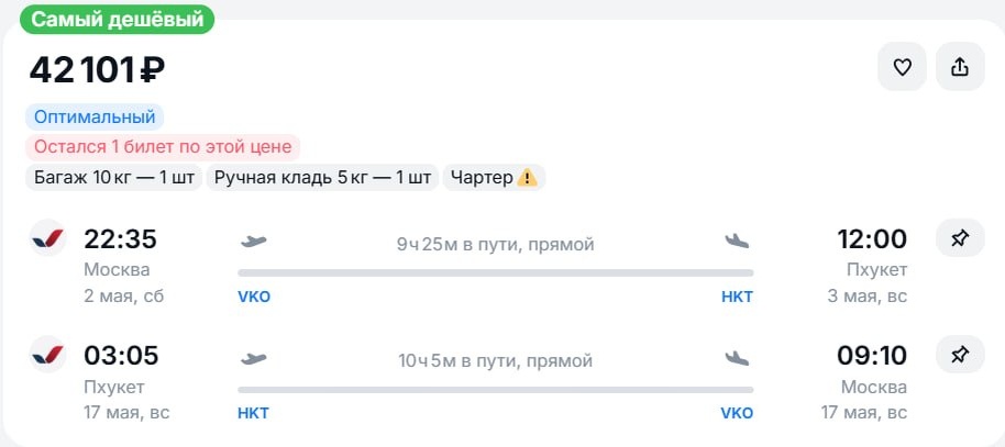🔥Прямой рейс из Москвы на Пхукет за 42100 рублей в обе стороны