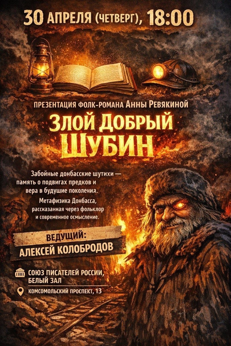 «Настало время донбасского мифа»: 30 апреля в здании Союза писателей России на Комсомольском, 13 пройдет презентация фолк-романа Анны Ревякиной. С автором специально для «Опаленных войной» побеседовала донецкий журналист Александра Костенко.