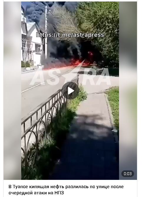 Во время пожара на нефтеперерабатывающем заводе в Туапсе Краснодарского края на улицу попала кипящая нефть из одного из резервуаров. Об этом глава краевого управления МЧС Алексей Клушин сообщил в разговоре с губернатором Вениамином Кондратьевым. Запись их беседы появилась в телеграм-канале губернатора 28 апреля. «Произошло вскипание и выброс нефтепродуктов из резервуара номер три, в результате чего горючая нефть перекинулась на дорогу, повреждены несколько автомобилей. Сейчас [ситуацию] контролируем», — заявил начальник МЧС. На записи видно, как он показал главе региона, где нефтепродукты «выплеснулись и полились по дороге». На видео можно заметить автомобиль, багажник которого оплавился после случившегося. Губернатор поручил эвакуировать местных жителей. Как выяснил телеграм-канал Astra, горящие нефтепродукты попали на улицу Кошкина, которая расположена возле НПЗ. Власти эвакуировали жителей улиц Кошкина, Пушкина и прилегающих переулков. Крупный пожар на НПЗ в Туапсе начался после уд