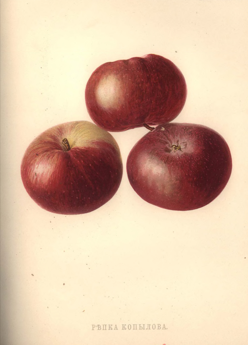 Сбор урожая и историческое значение Это раннелетний сорт. Яблоки поспевают очень быстро — к концу июля или началу августа, как раз к празднику Преображения Господня (Яблочному Спасу), когда крестьяне по традиции начинали есть яблоки нового урожая. Исторически Рѣпка Копылова была идеальным «народным» коммерческим сортом. Крестьян привлекала ее выносливость, быстрое вступление в плодоношение, яркий нарядный цвет и сладкая мякоть. Этот сорт выступал мощным стимулом для развития стихийного крестьянского садоводства по берегам Волги. Также яблоко отлично подходило для домашней переработки: высушенные без кожицы дольки сохраняли светлую мякоть, были очень сладкими и напоминали конфеты.