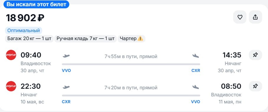 ⚡️Горящие билеты из Владивостока в Нячанг за 18900 рублей в обе стороны!