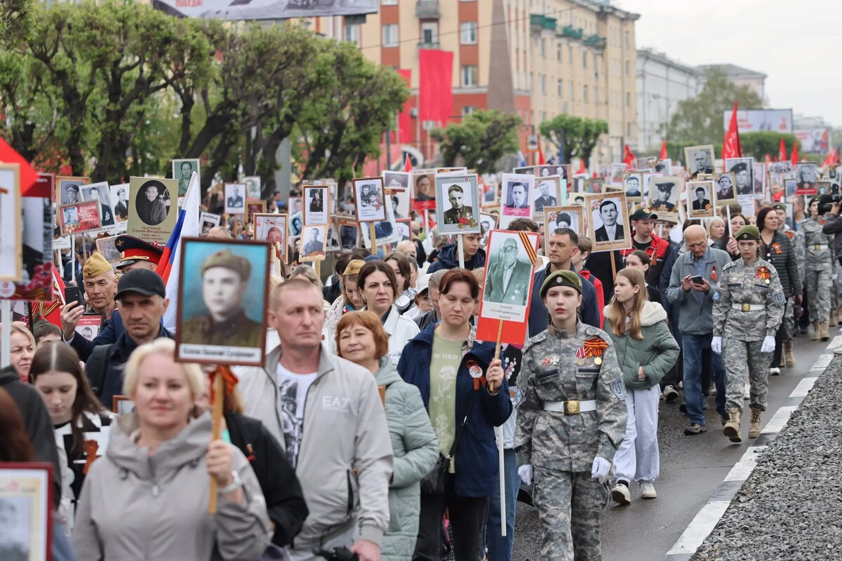 Акция «Бессмертный полк» пройдет в День Победы в Красноярском крае в очном формате. Об этом сообщил губернатор Михаил Котюков в своем канале в МАКС (https://max.ru/mkotyukov). В прошлом году в акции по всему краю приняло участие больше 100 тысяч жителей. «Уверен, что земляки вновь поддержат этот трогательный проект, направленный на сохранение памяти о героях каждой семьи», — отметил глава региона. Фото: Руслан Рыбаков