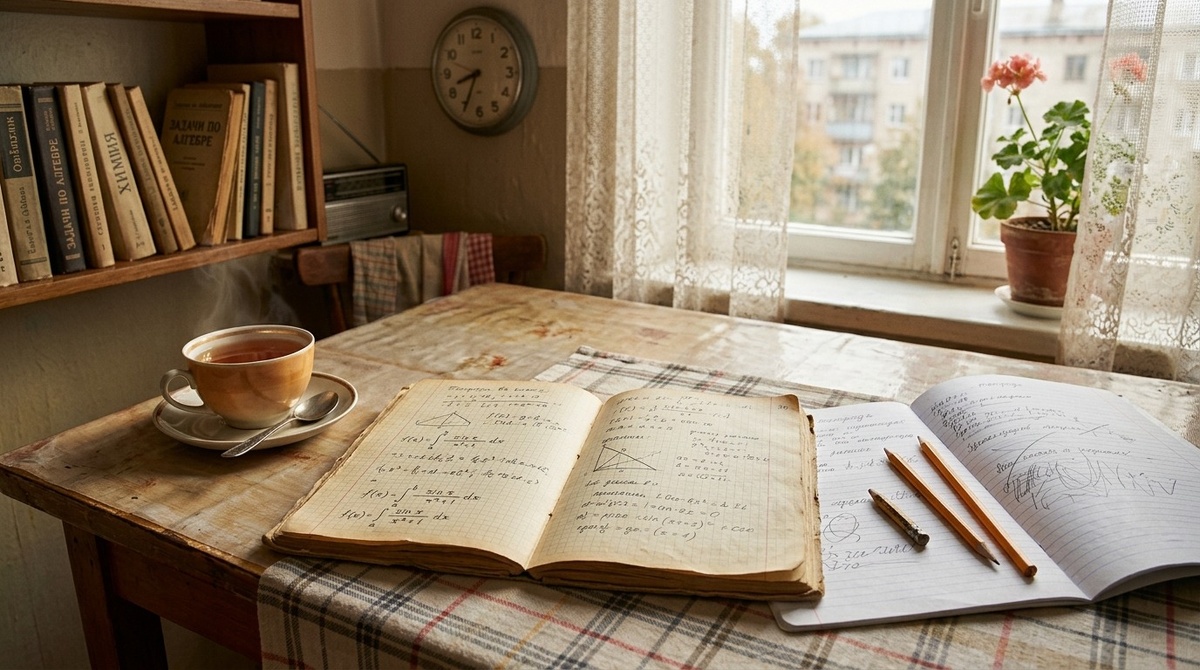 Тетрадь в клетку лежала на верхней полке сорок один год. Каждый сентябрь я доставала её, листала, убирала обратно. Лёнина тетрадь. Обложка выцвела, уголки растрепались, клеточки на страницах стали бледно-серыми, почти прозрачными. Но чернила держались – синие, густые, с лёгким наклоном вправо. Как будто Лёня до сих пор сидел рядом и дописывал условие.