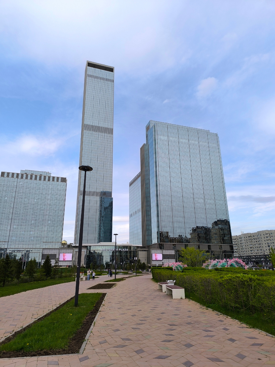 Когда впервые видишь Abu Dhabi Plaza, возникает ощущение, что ты не в Казахстане. Стекло, высота, масштаб.
