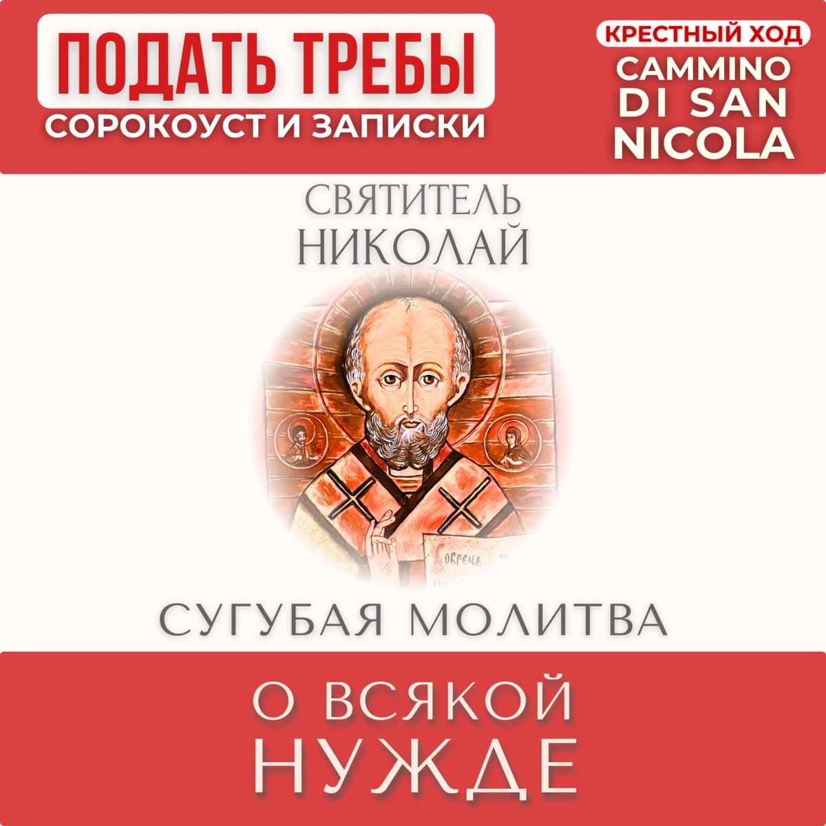 сугубая молитва о всякой нужде назад Дорогие братья и сестры! Начинается Крестный ход к мощам Николая Чудотворца в Бари. С 1 по 20 мая — каждый вечер будем молиться акафистом святому Николаю. 20 дней и 20 молитв — настоящий молитвенный марафон. 🙏 В эти дни мы будем сугубо молиться: — о всякой нужде — о здравии и исцелении — о работе и материальном устроении — о помощи в трудных обстоятельствах — о мире в семье, учёбе и жизненных решениях ✍️ Подать записки можно на сайте: 👉 spyridon-rimini.ru/treba 🔥 Присоединяйтесь к молитве! У каждого есть свои нужды, вопросы и трудности. По опыту прошлых лет знаем: Господь слышит, а святитель Николай — скоро помогает. ____ 📌Все имена, поданные на сорокоуст, будут помянуты во все дни Крестного хода 📌 Записки "В святом месте" будут однократно помянуты в один из дней 📌 Письма с просьбой или благодарностью будут оставлены у мощей Николая Чудотворца 22 мая ____ Как подать записки: 👉 Инструкция — https://dzen.ru/media/id/66df18f592917607e836