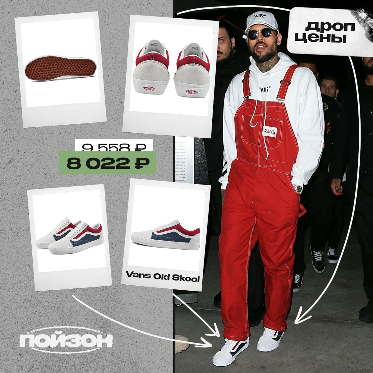 Откопали вот такой модный аутфит, в котором сошлось вообще все, начиная от комбинезона, заканчивая Vans Old Skool в ретро-дизайне. Айтем в «Дроп ценах», стоимость актуальна только сегодня. Vans Old Skool, цена от 8 022₽* (вместо 9 558₽) *стоимость может изменяться в зависимости от курса и размера Больше интересного на нашем сайте POIZON
