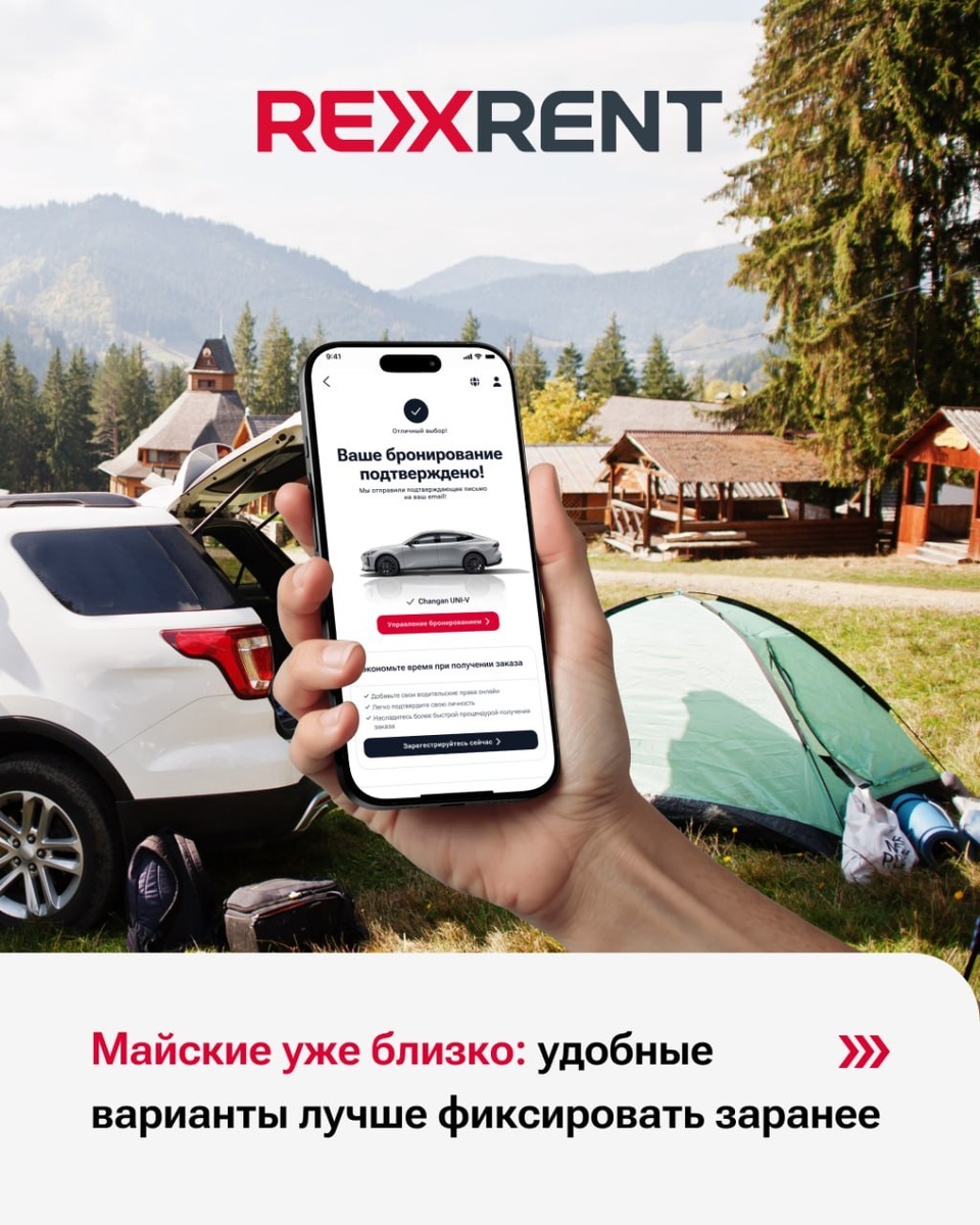 На майские праздники выбор авто уже совсем небольшой. Если собирались бронировать «чуть позже», то время настало. Пора действовать! 🎉Самые удобные варианты на праздники уходят первыми, особенно если нужен конкретный класс машины. 📌🔗Закрепите за собой авто сейчас и будьте уверены в его наличии Для этого забронируйте авто на сайте и оплатите онлайн весь срок аренды полностью или один день аренды через наш контакт-центр — 8(800)250-12-13. После этого машина закрепится за вами. 🤩 RexRent — лучше забронировать заранее, чем подстраиваться потом!