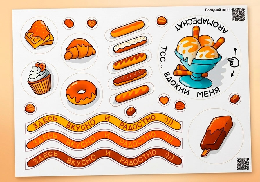 Компания "Аромамедиа" запускает новый уровень сенсорного опыта - доступный антистресс 4D, мгновенный перезапуск эмоций, «оживление» картинки. Уникальный гибрид осознанности и развлечения через ароматические наклейки. Наша реальность перегружена визуальной информацией, которая сегодня теряет внимание. Новая сенсорика - это использование нескольких каналов коммуникации: обоняние, зрение, осязание и слух - где ароматические наклейки - это эстетично спроектированный микро-ритуал, который можно взять с собой. На телефон, ноутбук, на банковскою карту или проездной, на пауэрбанк или холодильник, на скейтборд или многоразовый стакан для кофе. Может стать отличным дополнением в упаковке подарков или в оформлении поделки. Это больше не украшательство, скорее придание предмету индивидуальности и настроения, которые запускаются при каждом касании. В качестве аромата выбрана классическая карамель. Сладкая, тёплая, мягкая, тягучая - она переносит нас в беззаботное детство или в моменты настоящего гу