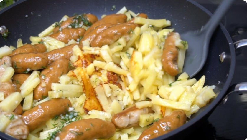 Бывает, что из обычных продуктов — картошки, муки, кефира — получается блюдо, которое запоминается на всю жизнь. У меня так с картошкой, которую готовила моя бабушка. Она жарила картофель с маленькими жгутиками из теста и называла их «крокодильчиками» или «нудлями». Подавала с домашней простоквашей и квашеной капустой. Вкус получался насыщенным, сытным и очень домашним.