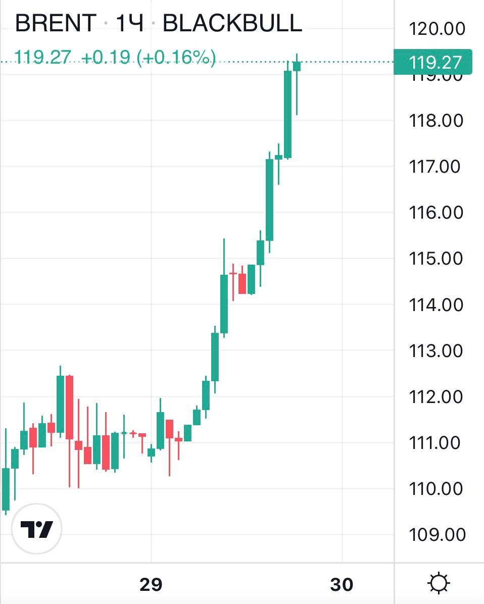 Цена нефти марки Brent приблизилась к $120 за баррель