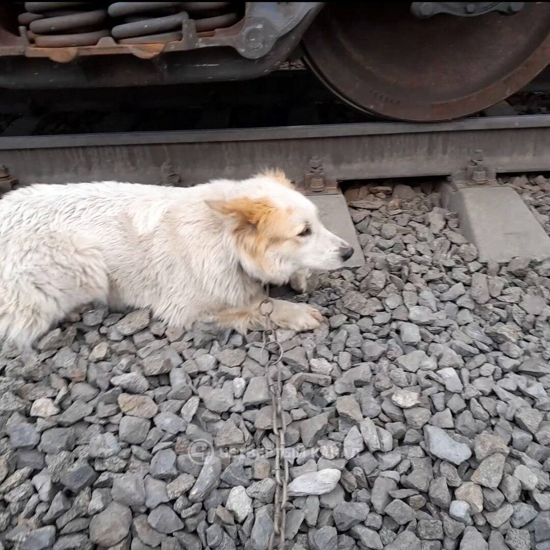 🤯В поселке Октябрьский волонтёры успели спасти собаку, привязанную к ж/д путям