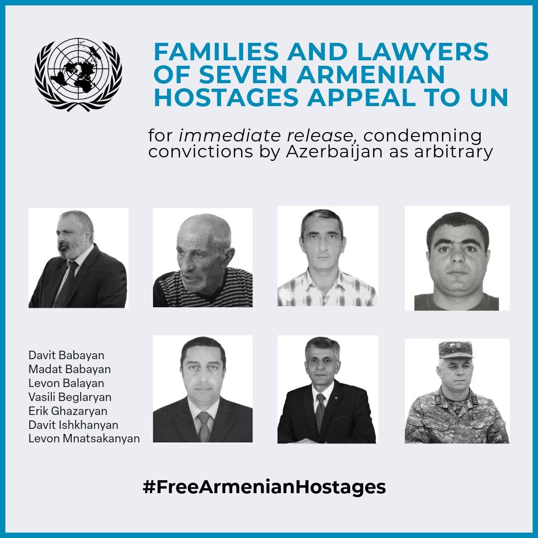 Международные адвокаты, представляющие семьи семи армянских заложников, в настоящее время находящихся в заключении в Азербайджане, подали официальное ходатайство в Рабочую группу ООН по произвольным задержаниям (РГПЗ) с требованием их немедленного и безоговорочного освобождения. Ходатайство, датированное 24 апреля — ежегодным днём памяти жертв геноцида армян 1915 года, — содержит просьбу об отмене их приговоров. В документе утверждается, что приговоры стали результатом грубых нарушений международного права.