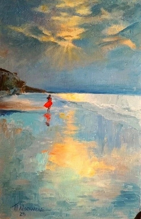 Татьяна Москалева,"Красное платье",холст на картоне,масло,размер 30х20 см.,2025 г.,стоимость 2500 руб.#АртСообществоMAX