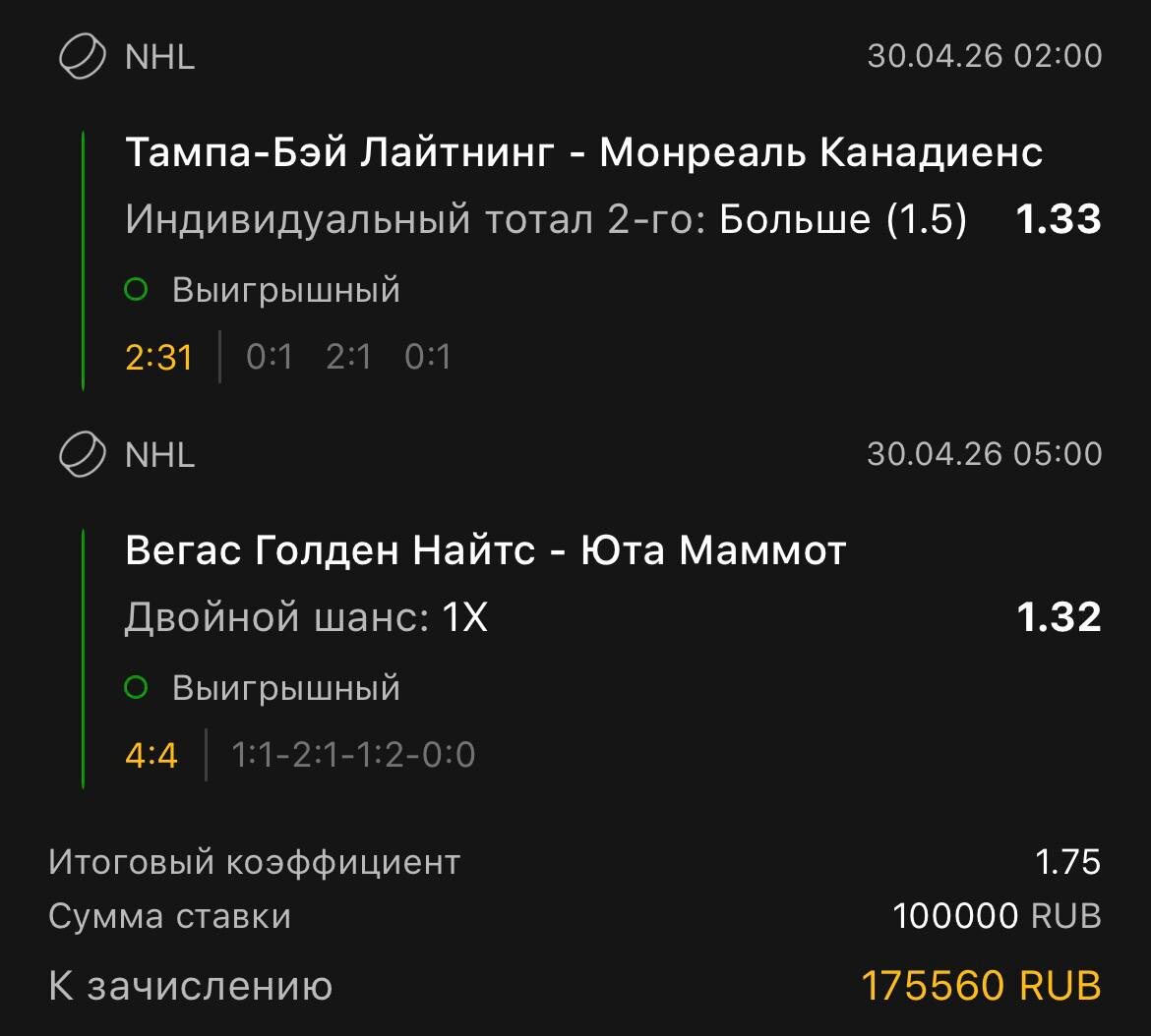 ➕➕➕Платную основу с очередной победой на 🏒НХЛ! У нас все стабильно👌