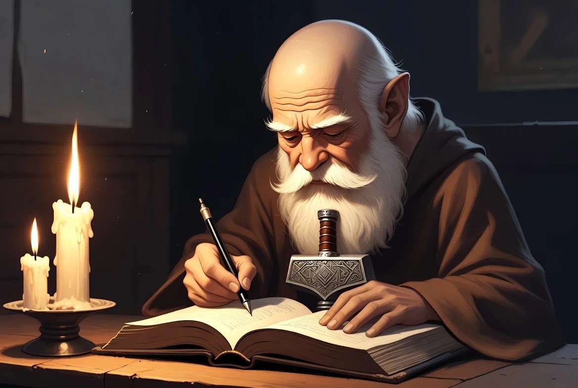 Истинное имя сего гнома утрачено, люди же дали ему имя Тимофей. А прозвище дали ему Невежен, так как не знал он ни языка, ни обычаев русских. Предание лишь сохранило имя его отца, которого звали, так же как и меня, Альвис. Известно, что умер Альвис рано, и его жена с ребенком ушла из гор в место, где люди построили дом, прославляющий своего бога, и прозванным после Далматовским монастырем. Видимо дочь нашего народа, имя которой времена не сохранили, в печали приняло людскую веру, и забыла наших предков. В монастыре ребенка нарекли Тимофеем и вырастили в своей вере. И вырос он в честном труде и стал так уважаем среди людей, с которыми жил, что когда монастырский человек Никон стал отрицать трудовой вклад в строительство монастыря многих людей, именно Тимофею люди доверили отстаивать их честь. И в это время Тимофей познакомился с гномами, живущими на Горе, что в городе Тобольске. И познал он свой род и решил собрать всех гномов в одно поселение, где были бы гномы вместе, а люди