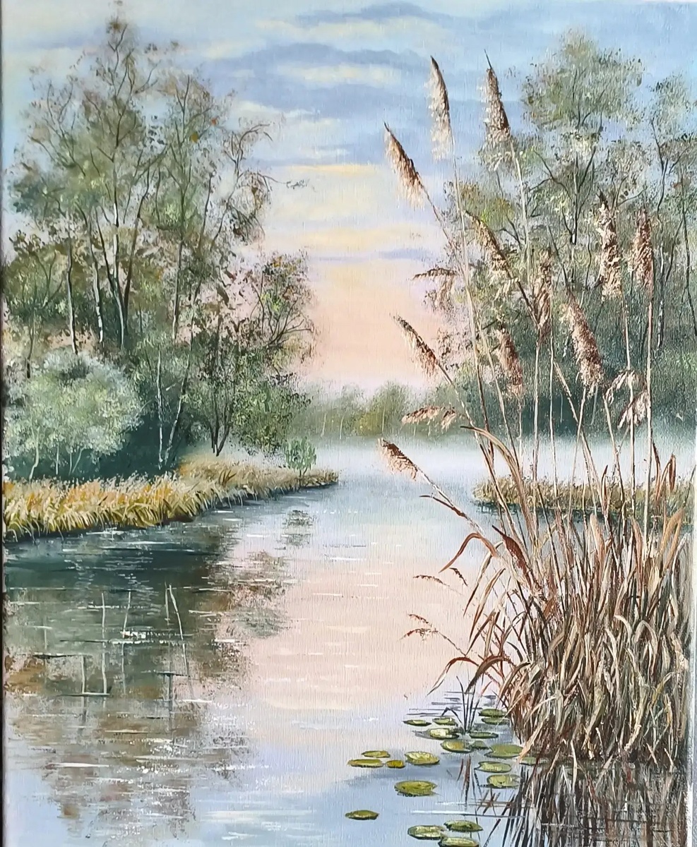 Ирина Завадская "утро на озере", холст на подрамнике 35*45, масло