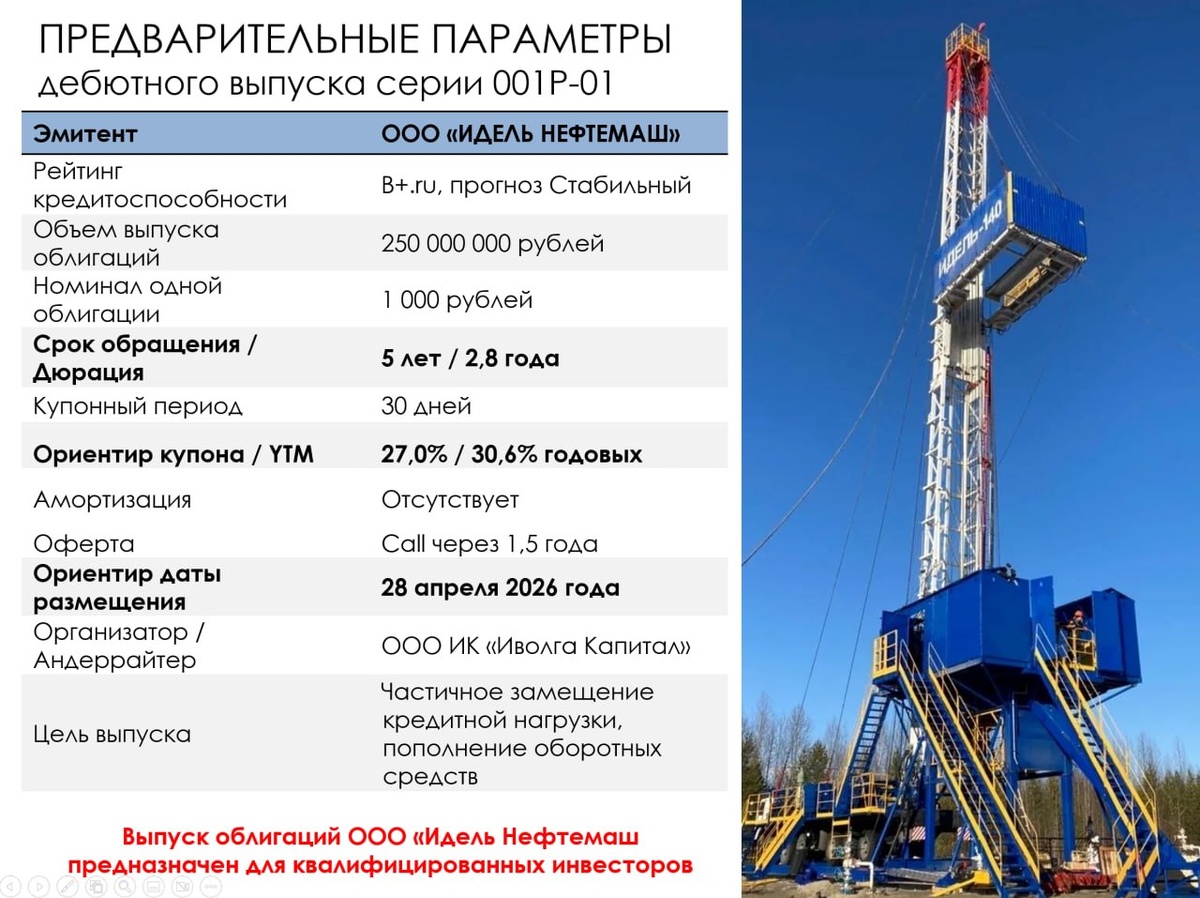 Сделки в портфеле ВДО - покупаем Идель Нефтемаш (B+.ru, 250 млн руб., YTM 30,6%)