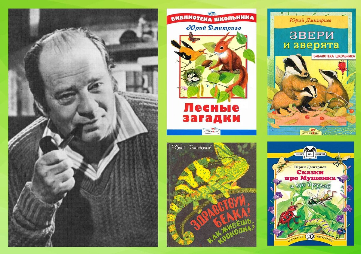 30 апреля исполняется 100 лет со дня рождения замечательного детского писателя-натуралиста Юрия Дмитриевича Дмитриева (настоящая фамилия – Эдельман) (1926-1989). В детстве Юра очень любил природу, интересовался жизнью животных и растений. Его любимой книгой была «Жизнь животных» А. Брема, которая очень повлияла на его творческую деятельность. Когда началась Великая Отечественная война, Юрий ушел на фронт. После войны поступил на филологический факультет Московского университета. Долгое время работал учителем русского языка и литературы. Он был прекрасным педагогом и мог бы сделать хорошую педагогическую карьеру, но Юрий Дмитриевич выбрал писательскую деятельность. В 1957 г. вышла его первая книга «Зелёный патруль», с которой произошла удивительная вещь: она вызвала к жизни целое пионерское движение, связанное с охраной природы. В веселой и остроумной научно-художественной повести «Здравствуй, белка! Как живешь, крокодил?» много забавных сценок и веселых страниц, посвященных языку живот