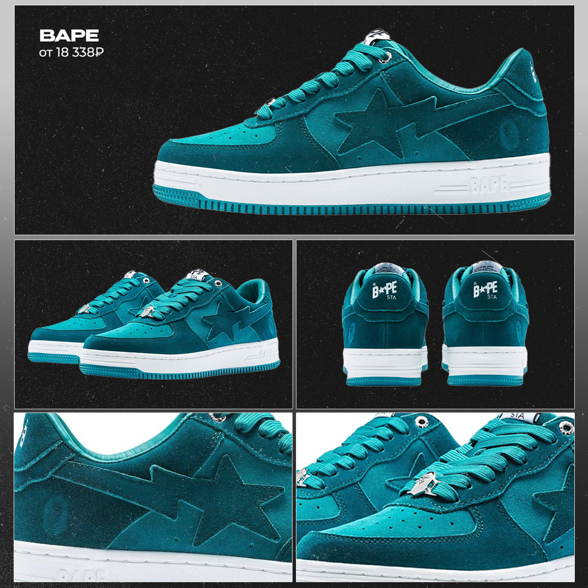 На POIZON моделей очень много — выбрали самый топ. С ними образы точно заиграют новыми красками. BAPE SK8, цена от 27 384₽* BAPE, цена от 19 875₽* BAPE, цена от 15 885₽* BAPE SK8, цена от 34 232₽* BAPE, цена от 18 338₽* *стоимость может изменяться в зависимости от курса и размера Больше интересного на нашем сайте POIZON