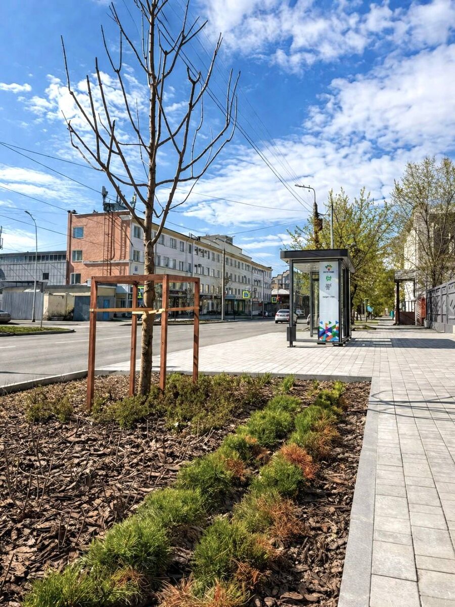 Продолжаем серию постов про благоустройство дворов и территорий «Атланта». Рядом со строящимся домом на Куйбышева, 49 приводим в порядок пешеходную улицу и общественные пространства. Установили новый остановочный комплекс. Остановка на ЗДС теперь со светодиодной подсветкой, электронным табло, где можно будет посмотреть расписание автобусов, камерами видеонаблюдения и USB-разъемами для быстрой зарядки. Также вокруг обновили тротуарную плитку на пешеходных дорожках. Сейчас ухаживаем за деревьями и кустарниками, чтобы в мае все расцвело пышным цветом. И так, шаг за шагом, преображался и весь центр любимого города.