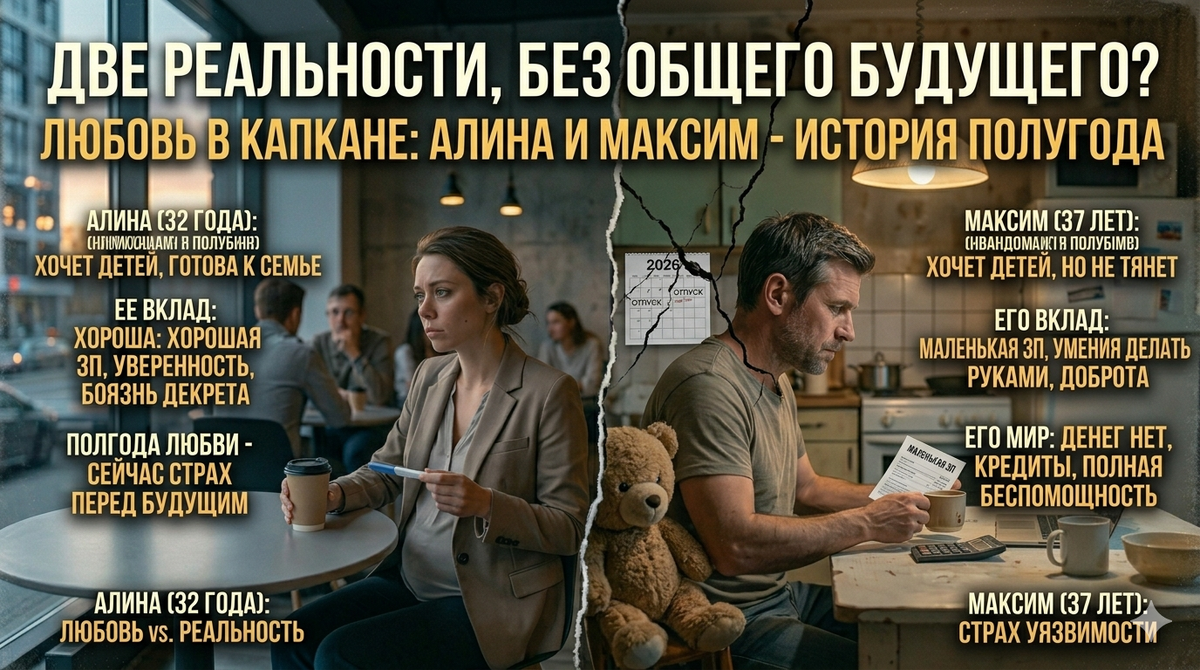 «Если я сейчас не могу отложить подушку безопасности, значит, мой доход едва покрывает мои текущие стандарты, — рассуждает Алина. — В декрете мои доходы упадут до пособия, а расходы вырастут вдвое. Максим не покроет этот разрыв. Итог: кредиты, стресс, скандалы из-за нехватки денег и выжженная земля вместо семьи».