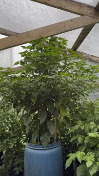 Еще один полосатик, теперь уже из Бельгии. Вид - c. baccatum. Родителями сорта являются Aji Fantasy и Bishop Crown. Автором сорта является Лоран Мине (Laurent Minet) В этом году выращиваю первый раз. Посев сухими сразу в грунт 15.03.24. Всходы через неделю. Получается что-то около 135-140 дней до массового созревания. Но не все так просто. Сорт еще молодой и не до конца однороден и у меня проявилось два фенотипа с одинаковым габитусом. Различаются только формой стручков, их размером и сроками созревания...