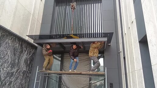 УСТАНОВКА СТЕКЛЯННОГО КОЗЫРЬКА: как мы парим 380 кг стекла над землей