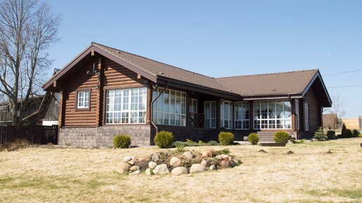 Одноэтажный деревянный дом площадью до 200 кв. м. с большой террасой и вторым светом