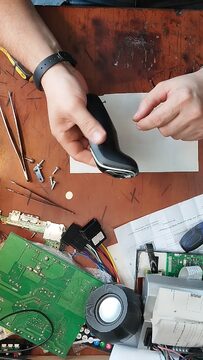 На самом деле проблема типовая и решение тут тоже самое простое из возможных. С данным дефектом магнитолы в мою мастерскую приходили не раз. На канале даже есть видео (кажется). Итак: при включении зажигания на магнитоле включается голубая подсветка экрана и все. На табло нет никаких символов, на кнопки не реагирует. Вскрываем корпус. Здесь и верхняя, и нижняя крышки держатся просто на защёлках. Далее внимательно рассматриваем плату со стороны деталей. Все тут заляпано мерзкой коричневой окаменевшей субстанцией...