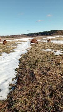 Утром шел снег, а после обеда вышло солнышко и стало тепло. Первая прогулка козлят