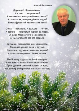 01.12.2025 Понедельник Вчера друзья-коллеги разделили мой юбилейно-творческий калач. Объявление от Минусинской библиотеки Пришли и слушали, и смотрели, и реагировали — то улыбкой, то усмешкой, то эмоцией души... Грызли калач с радостью, грустью, с недоумением... …О, книжный храм словесности почтенной! Избыток чувств и средоточье тем, Рассредоточенных в небрежности по стенам И бережно хранимых между тем. Ревнивым взглядом зависти смятенной Скольжу-скольжу по книжным корешкам. Уж тем и жив, что жажду вожделенно Блуждать по строчкам, словно по лужкам...