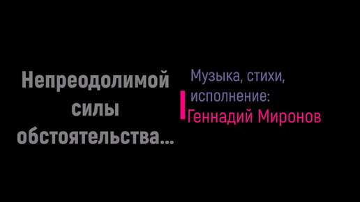 Это стихи к песне, которая будет представлена вашему вниманию в следующей публикации... --------------------------------------------------------------------------------------------- Непреодолимой, видно, силы обстоятельства, А иначе как ещё подобное понять, Позволяют принятые раньше обязательства Обречённо, с лёгкою душой не выполнять. . Непреодолимой, видно, силы обстоятельства, А иначе, как ещё такое объяснить, Позволяют, вспомнив все известные ругательства, В этих обстоятельствах весь мир вокруг винить ...