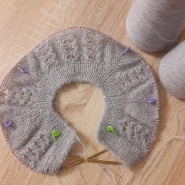 Я закончила кардиганчик для внучки (размер 4 года с запасом) Начало и рабочие фото здесь, обычный реглан сверху. Росток связан от горловины, 7 поворотных точек с каждой стороны. После кокетки отделяем петли рукавов и соединяем спинку и полочки. На подрезы добавила по 4 петли Закрывала петли рукавов...