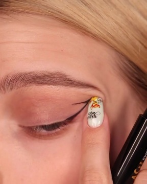 Сухой кистью трудно добиться желаемого насыщенного эффекта и остренького кончика стрелки. Поэтому кисть можно слегка смочить водой, а в идеале - фиксатором для макияжа, так вы продлите...