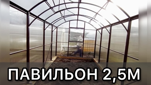 ТЕПЛИЦА ОТ ПРОИЗВОДИТЕЛЯ С ВЫСОКИМИ СТЕНАМИ. ПАВИЛЬОН 2,5М ТЕПЛИЦА ПАВИЛЬОН 2,5М. ШИРИНА 2,5 МЕТРА. Нечетная длина теплицы по честной стоимости. «Павильон 2,5М» это теплица, сочетающая в себе полукруглую крышу и высокую прямую стенку. Благодаря этому вы получаете дополнительную защиту от снега и возможность использовать каждый см площади. Ширина такой теплицы 2,5 метра, высота стенки 1,8 м, общая высота 2,35метра, а длина может быть любая, кратная 1 метру На «Павильон 2,5М» мы даём гарантию 10 лет по снеговой и ветровой нагрузке без ограничений. Потому, что применяется усиленный каркас, который производится из профильной оцинкованной трубы толщиной 1,2-1,4 мм. Для усиления в этой модели используются опорные стойки из трубы 40х40х1,4мм, крыша в виде фермы и диагональные усилители, которые крепятся в распор между аркой и торцом. Арки собираются на болт М8 и для жесткости ещё на саморезы 5,5х19, торцы на два болта. Вертикальная часть торцов закрывается уголком 50/50, на стыке крыши и торца уплотнительная резинка и перелив стеновой – переход крыша - стена. Для защиты каркаса от коррозии и влияния агрессивных внешних факторов применяется порошково-полимерная окраска. Цвет 8017 шоколад. Сверху каркас закрыт качественным сотовым поликарбонатом высокой плотности, соты которого защищены от грязи перфолентой и торцевым профилем. Для проветривания в «Павильоне» применяется дверь глухая или с форточкой, фрамуга на крыше или стеновая форточка. Стандартная фрамуга ставится на крыше между прогонами. Открывание может быть ручное или автоматическое с использованием термоприводов.