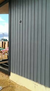 31.10 Лисий Нос.  Закончен монтаж фасада на нашем объекте. Применяется крашенная на производстве скандинавская доска 23х145х6000 с поднятым ворсом. Начинаем монтаж подшивы свесов. Обязательным является применение москитной сетки для защиты подкровельного пространства от насекомых.
