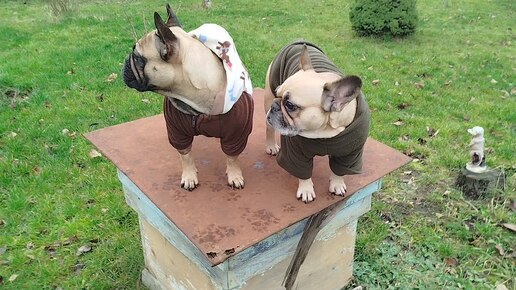 Немного ноябрьских бульдогов. Норе 5 мес, Бабежуже- 5 лет, Еве 2,5 года Выдался погожий денек вчера, а сегодня у нас уже мороз ночью был. Мелкая наша быстро растет, по росту почти догнала старших. Очень объемная, корпусная девушка.